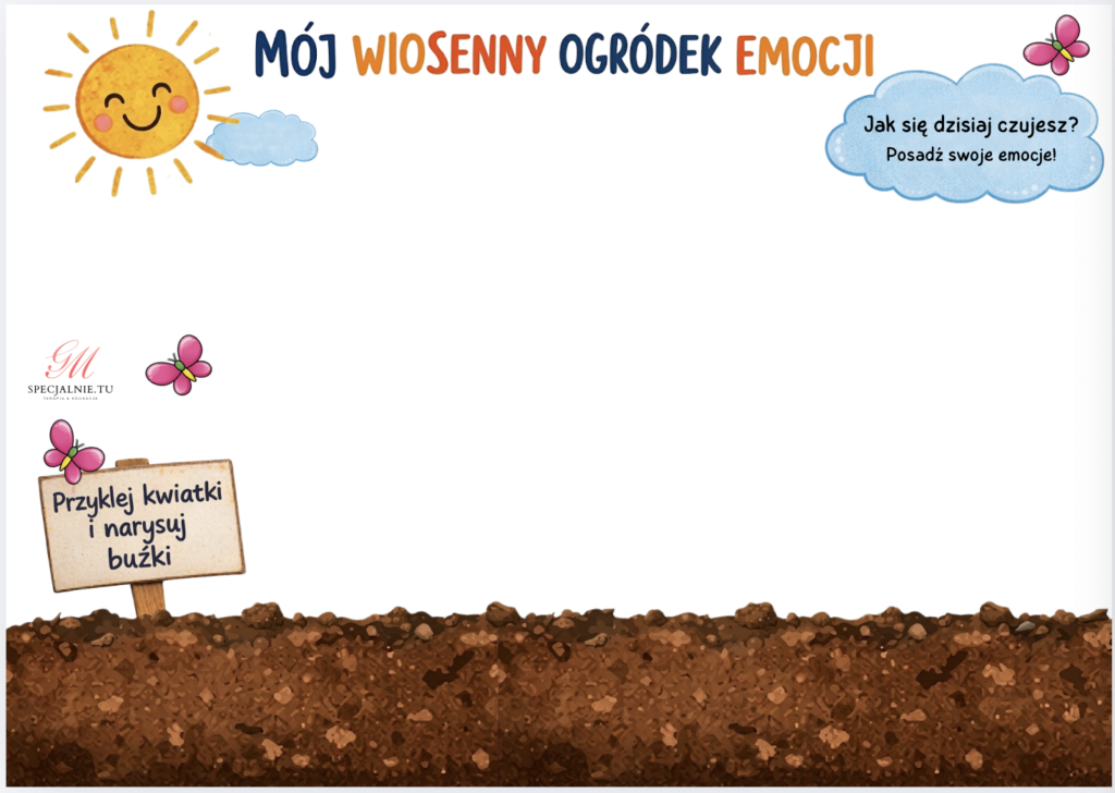 „Wiosenny ogródek emocji” zabawa, która w prosty i przyjazny sposób pomaga dzieciom rozpoznawać oraz nazywać emocje.